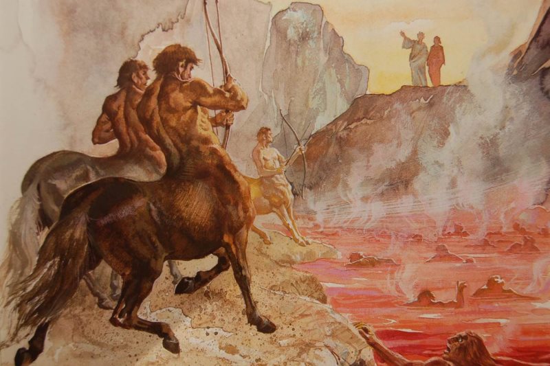 Bên cạnh dòng Phlegethon, Dante cũng chú ý đến sự xuất hiện của đám nhân mã: