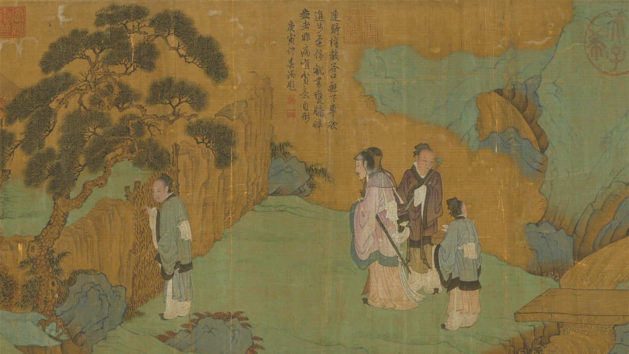Một phần bức tranh "Úng Dũ đồ" của Nguyên Triệu Mạnh Phủ, kể chuyện Tử Cống gặp Nguyên Hiến. (Tranh: Bảo tàng Cố Cung quốc gia Đài Loan, Public Domain)